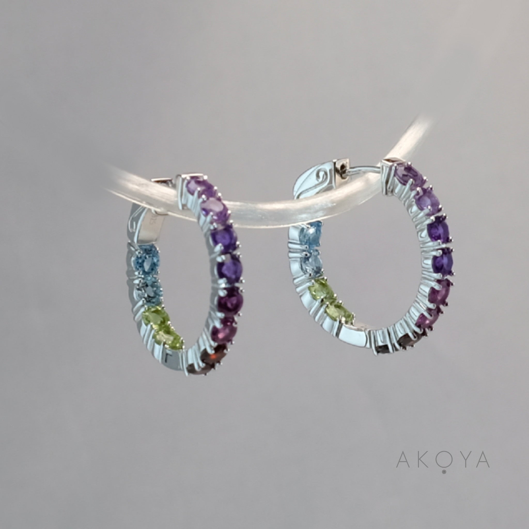 These aren't your everyday hoops. A curated cascade of gemstones — each one hand-set in polished sterling silver — transforms a classic silhouette into something truly extraordinary. Warm and cool tones dance alongside one another, catching the light from every angle and shifting beautifully as you move. Vibrant, layered, and endlessly wearable.